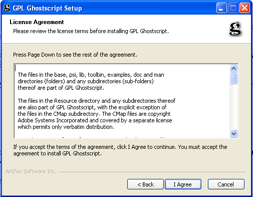 Далі у вікні GPL Ghostscript Setup потрібно ознайомитися з ліцензійною угодою та натиснути кнопку I agree.