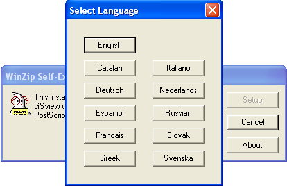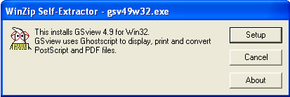 Запустіть на виконання файл gsv49w32.exe або файл з аналогіною назвою, якщо номер версії більший за 4.9 — див. символи, виділені у назві підкресленням. З'явиться вікно WinZip Self-Extractor - gsv49w32.exe, у якому потрібно натиснути кнопку Setup.