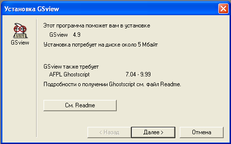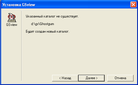 Далі у вікні Установка GSview натиснемо Далее, підтверджуючи створення відповідної теки.