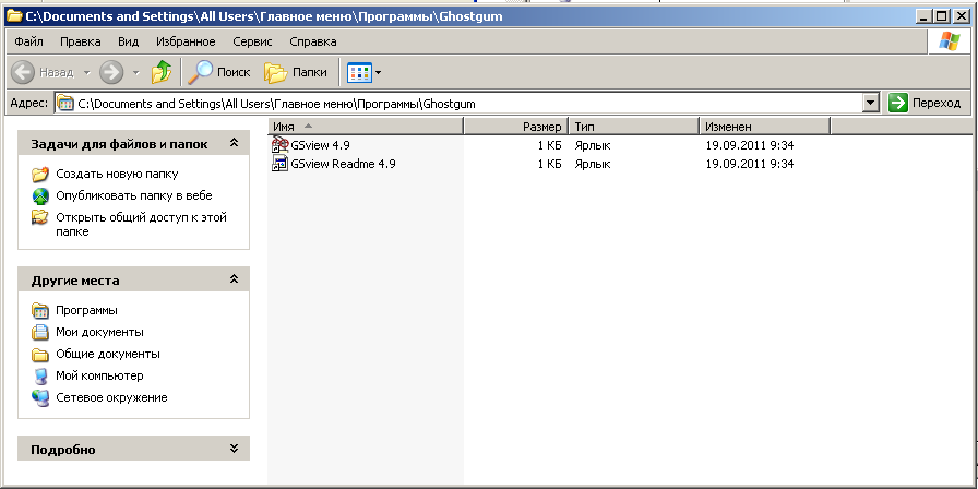 Далі з'явиться вікно, яке вказуватиме розташування ярликів (запуску GSView 4.9 і документації GSView Readme 4/9). Це вікно потрібно закрити.