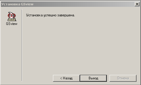 Після успішного встановлення вікно Установка GSview потрібно закрити, натиснувши кнопку Выход.