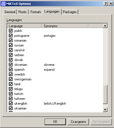 Перейдіть на закладку Languages і виберіть мови, для яких буде підключено файли (правил) перенесення. Після цього натисніть кнопку Застосувати. Якщо ніякого додаткового вибору не здійснено, то і кнопку натискати не потрібно.