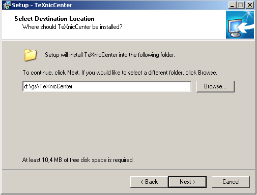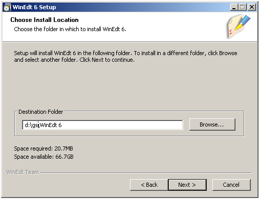 У новому вікні задайте теку встановлення програмного забезпечення: d:\gs\WinEdt 6 і натисніть кнопку Next.