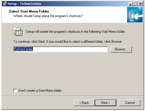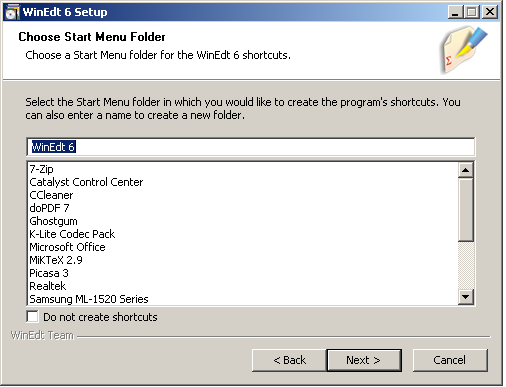 У наступному вікні можна змінити назву теки, що містить ярлик запуску WinEdt. Натисніть кнопку Next.