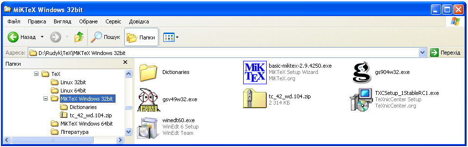 Для повноцінної роботи з втіленням TeX для Windows потрібно встановити такі програми: