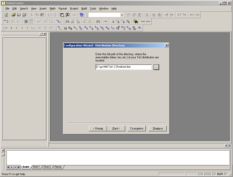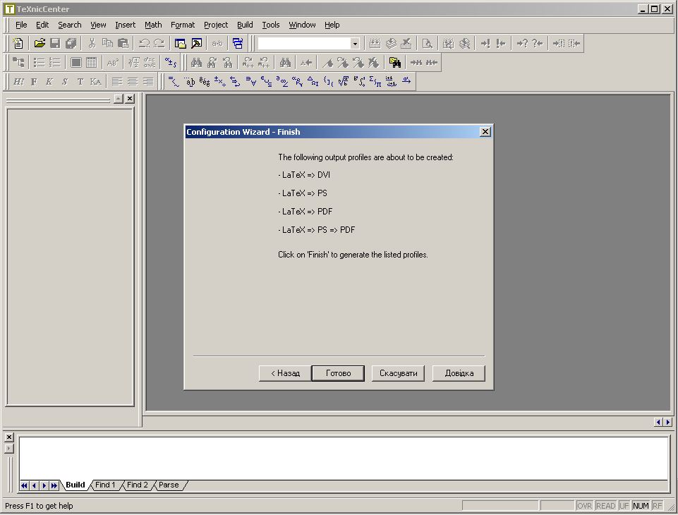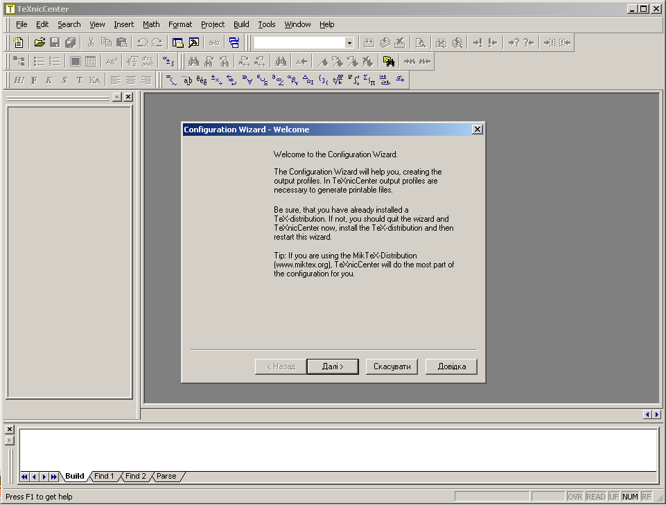 У вікні WinEdt Configuration Wisard натисніть кнопку Cancel, щоб відмовитися від налаштування.