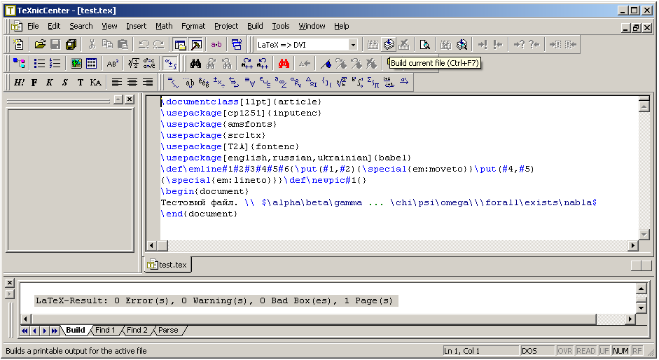 Створимо у довільній поточній теці файл test.tex з таким вмістом: