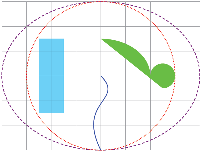 Еліпс з осями a й b записують так: ellipse (a and b).