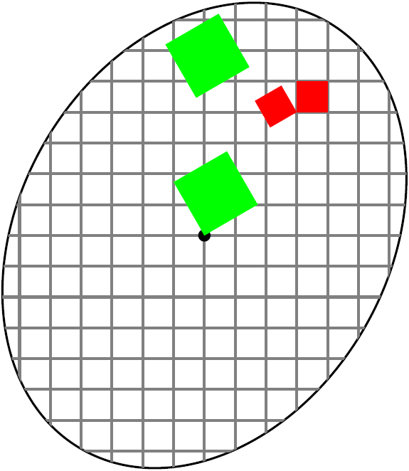 Ґратку записують, наприклад, так: \draw[step=.1cm] (1,2) grid (3,4);. У поданому прикладі параметр step визначає крок ґратки, а пари чисел до й після модификатора grid – область [1,2]×[3;4] для покриття ґраткою.