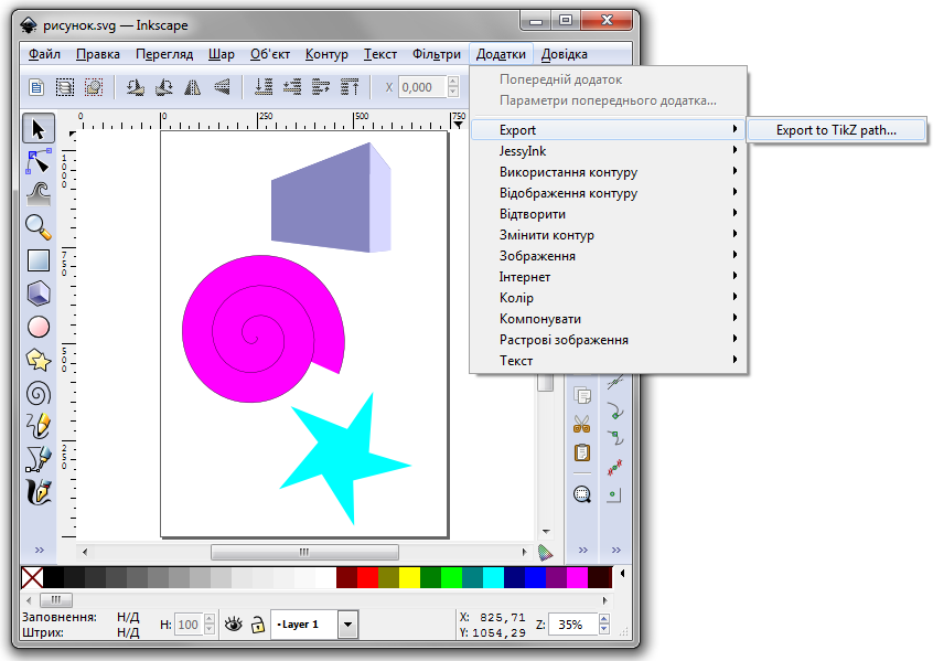 11. Розширення Inkscape до експорту результатів у TikZ