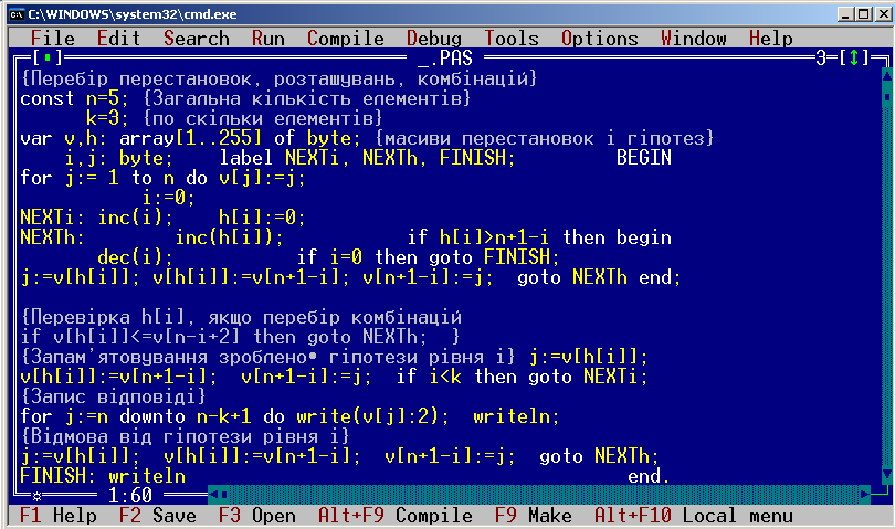 Compile — запуск на виконання (після знаку рівності "=" подано призначення клавіш):